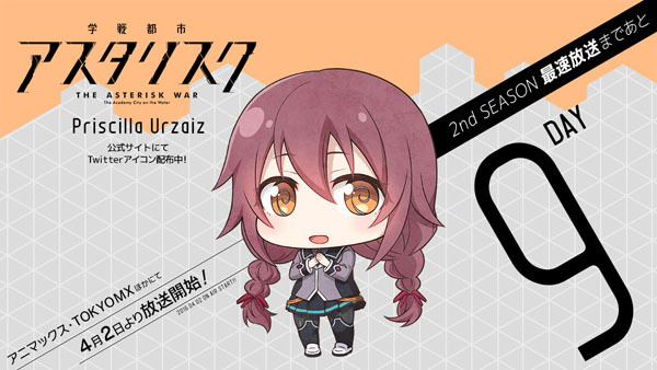 プリシラ・ウルサイス 長妻樹里 学戦都市アスタリスク 2nd SEASON 29pt A1 Pictures, flyingDOG, KADOKAWA, MF文庫J, okiura, Rasmus Faber, WEST GROUND, アスタリスク製作委員会, アニプレックス, アニマックスブロードキャスト・ジャパン, シルヴィア・リューネハイム, セトウケンジ, バンダイナムコ三屋咲ゆうの小説、及びそこから派生したアニメ、漫画作品。 12年9月に1作目となる「学戦都市アスタリスク 1姫焔邂逅」が刊行。既刊11巻。 6つの学園で構成された水上都市を舞台に、優勝すると好きな望みを叶えてもらえるという闘技大会での優勝を目指して切磋琢磨する少年少女たちの姿 『学戦都市アスタリスクフェスタ 煌めきのステラ』 『学戦都市アスタリスクフェスタ 煌めきのステラ』特集ページ(電撃オンライン) TVアニメ『学戦都市アスタリスク』
